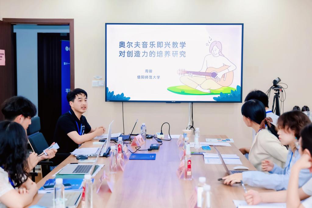 为促进跨学科、跨领域的交流与合作,打破传统创新模式局限,完善人才培养机制,全面提升国家自主创新能力。2025年6月13日至15日第十一届全国创造力学术研讨会于华东师范大学普陀校区顺利举办。本次会议由中国创造力研究协作组、华东师范大学心理与认知科学学院、上海市心理学会、上海市心理健康与危机干预重点实验室主办。会议以“数智时代的自主创新与人才自主培养”为主题,汇聚顶尖智慧,重点聚焦新兴技术对自主创新和人才培养的影响和数智时代教育模式革新等核心议题,旨在通过高水平的学术交流与思想碰撞,为教育强国建设和中华民族伟大复兴提供坚实的人才支撑。永利官网理论教研室主任周骏副教授携研究生张文山应邀参加本次会议,并在会议论坛做《奥尔夫音乐即兴教学对创造力的培养研究》主题发言。
