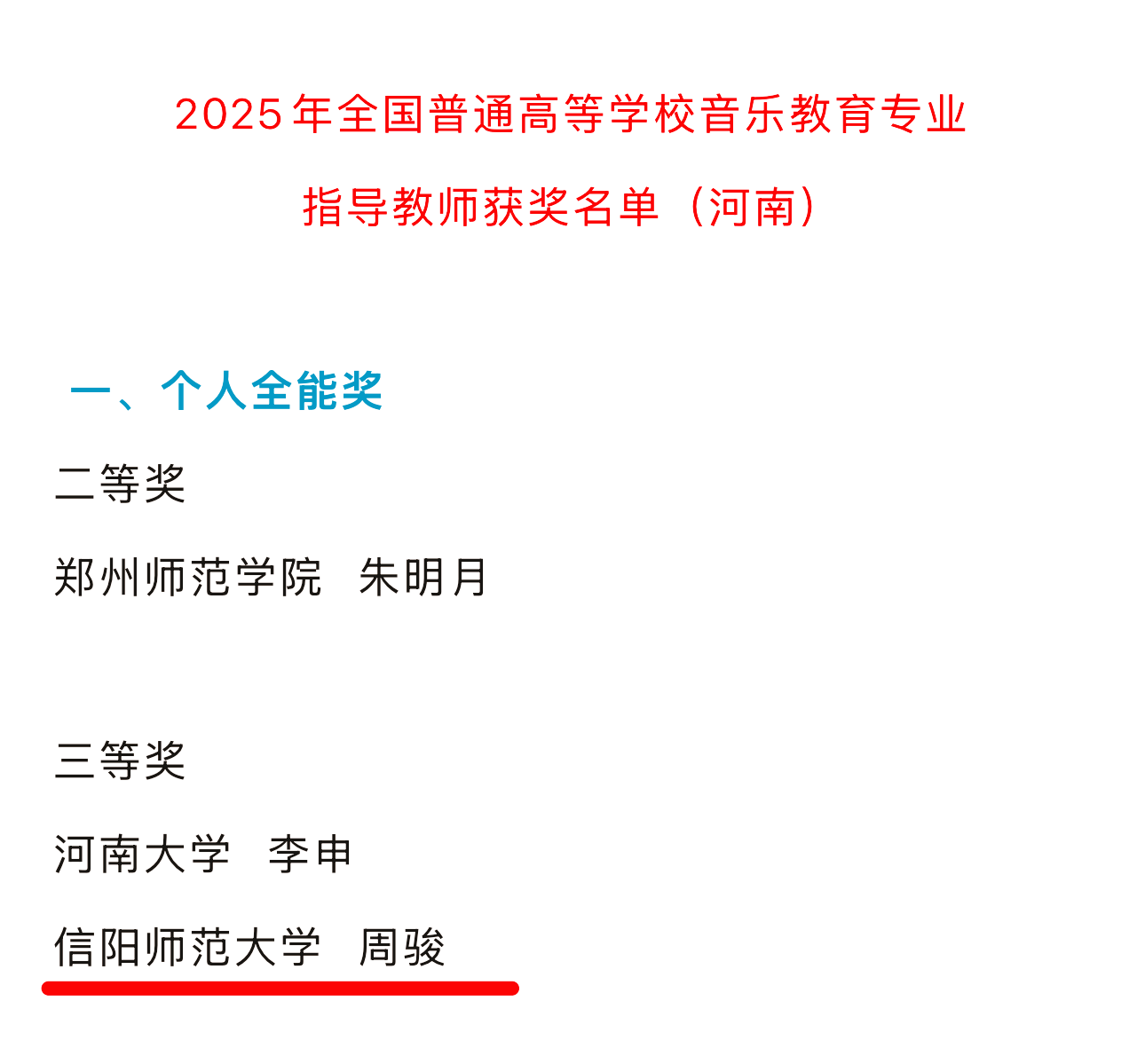 近日,教育部2025年全国普通高等学校音乐教育专业本科学生和教师基本功展示活动成绩正式揭晓,永利官网音乐理论教研室主任周骏副教授荣获音乐教育基本功个人全能三等奖,实现了我校及永利官网在该项国家级专业赛事上的历史性突破。